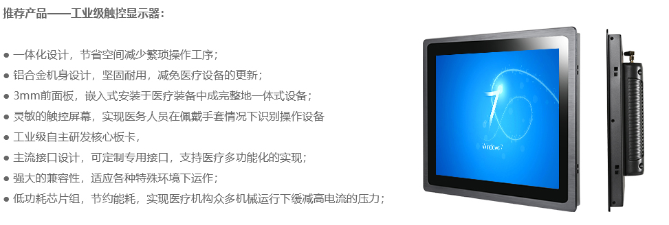 醫(yī)療衛(wèi)生關系著千千萬萬人民的健康生活,醫(yī)療行業(yè)的特殊性,常常遇到醫(yī)療機械設備,要求其應用的觸控設備需具有操作簡便精確,耐酒精消毒擦拭清洗,并需要支持佩戴手套可操作等特點。
