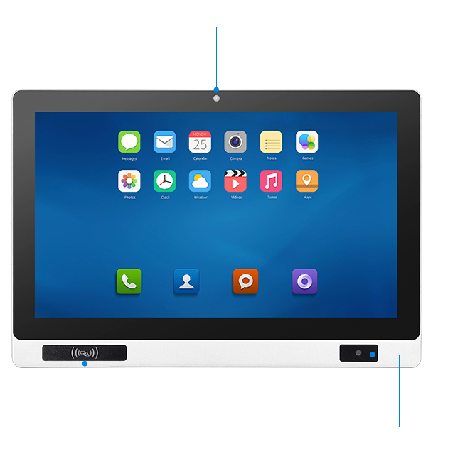 8、搭配100W攝像頭、125K+ 13.56Mhz雙頻讀卡器以及廣視角條碼掃描,使產(chǎn)品應(yīng)用更加豐富,廣泛。